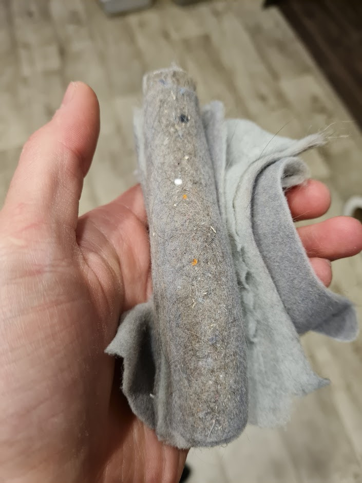 С каждым циклом сушки, мусора с белья собирается всё меньше, дома стало заметно чище — напару с роботом пылесосом для жены это просто спасение)