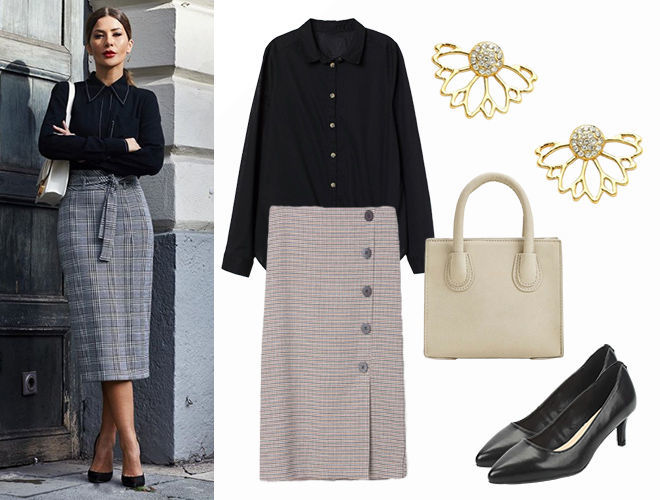 Элегантная классика — идеальный вариант, который поможет любой женщине выглядеть роскошно. Не забываем проверять актуальный крой одежды: юбка-карандаш должна быть длиной чуть ниже колена, без высоких разрезов и декора, а рубашка не должна плотно облегать тело. Финальным штрихом наряда будут сдержанные серьги, туфли с изысканным каблучком-рюмочкой и алая помада. Готово! Коллеги обзавидуются, узнав, что этот стильный образ обошелся вам совсем недорого.