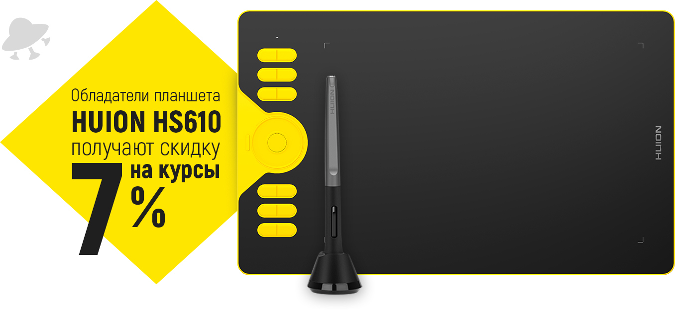 Главная особенность HUION HS610 SE — российская локализация. Это одно из двух устройств компании, адаптированных под наш рынок. Такие планшеты имеют российскую гарантию и специальный дизайн: версия HS610 SE выполнена в жёлто-чёрных цветах. Также с этой моделью вы получите бонус — бесплатные лекции по CG-рисунку от школы цифровой графики Smirnov School.