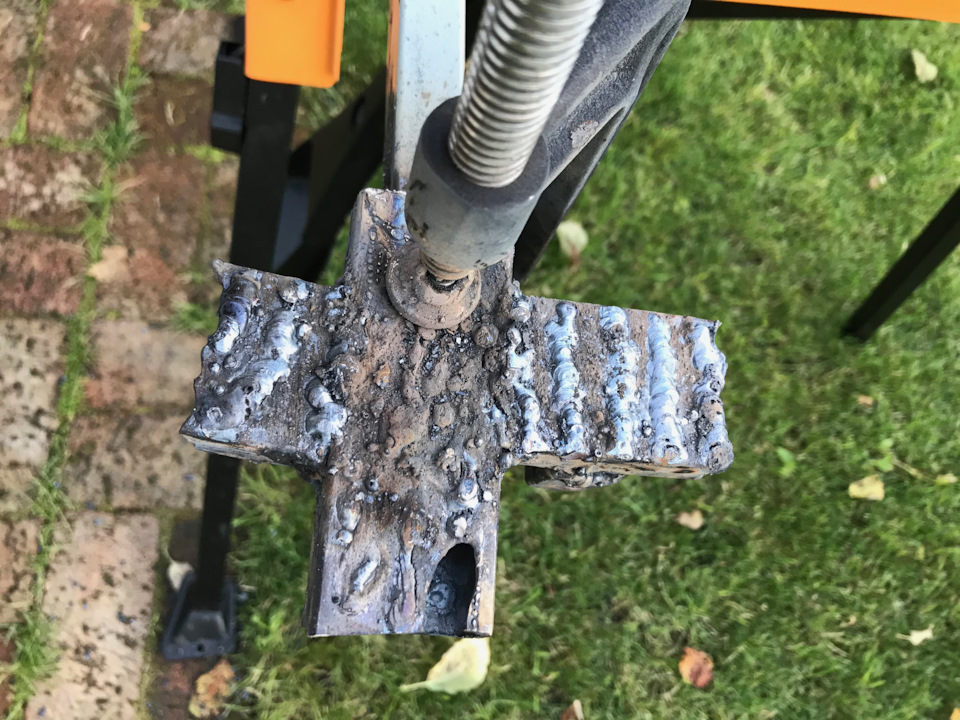 Самодельный сварочный столик закреплен в тиски Triton SuperJaws