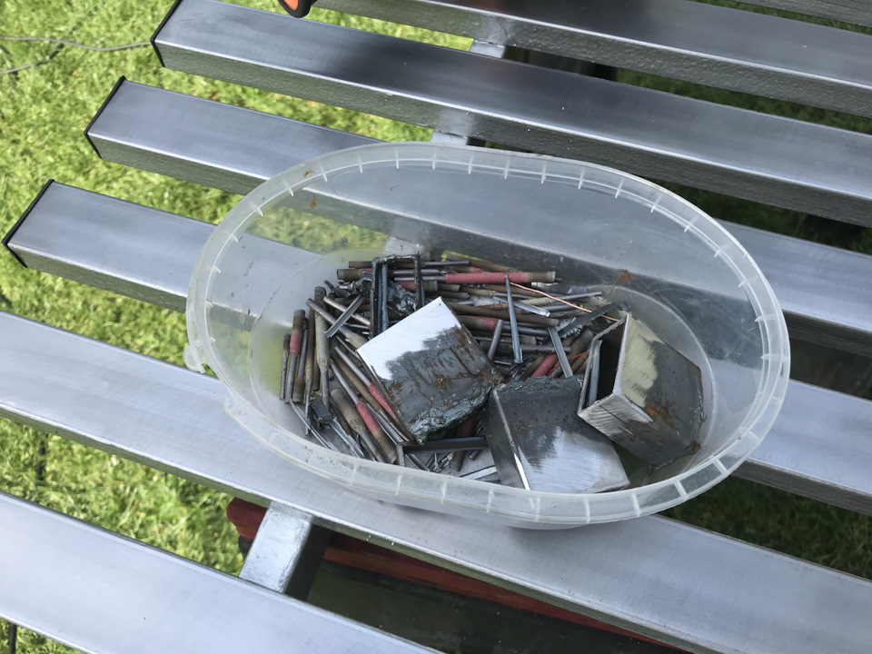Для мелких обрезков и огарков электродов крайне желательно завести емкость, чтобы не мусорить вокруг: