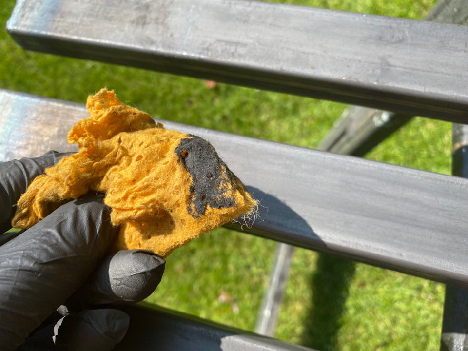 Поскольку было лето, я мыл профиль керхером, на солнце он быстро высыхал, остатки масла я стирал универсальным очистителем.