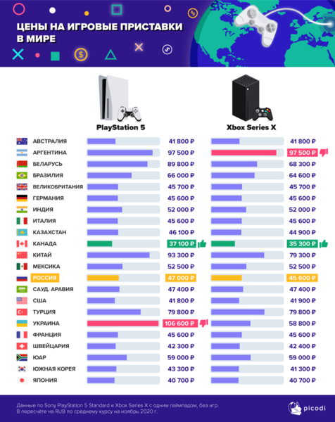 Cтраны с самыми высокими и низкими ценами на консоли PS5 и Xbox Series X