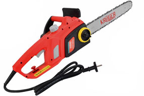 Модель от производителя KRUGER оснащена двигателем мощностью в 2,5 кВт, который позволяет разогнать цепь до 800 оборотов в минуту. Преждевременный перегрев предотвращает специальная защита от перегрузки. Помимо этого для очень высокой производительности предусмотрена автоматическая система подачи масла. Она защитит устройство от быстрого износа. Также электропила оснащена блокировкой от случайного нажатия запуска в виде дополнительной защитной кнопки. Что касается прочих отличительных особенностей, то к ним можно отнести наличие в комплекте двух рабочих шин с пильными цепями. Длина каждой шины составляет 40 см, одна из них основная, а вторая запасная.