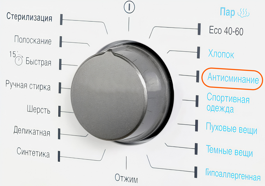 Ответ прост: совсем не соответствует. Громкое название — это маркетинговый ход для привлечения покупателей. Так есть ли прок от этой программы? Есть. Режим рассчитан на подготовку белья к легкому проглаживанию утюгом. Да-да, все-таки без него не обойтись. В результате машина способствует меньшему смятию одежды при стирке.