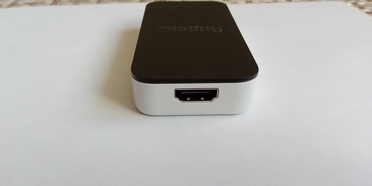 - Подключить его в ТВ, используя для этого HDMI-провод. Для защиты приставки от повреждений подойдет удлинитель — он доступен в комплекте.