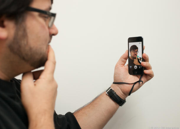 Фронтальная камера такая же как в iPhone5, снимает 1.2мп фото и видео 720p. Для автопортретной съёмки вполне подходит.
