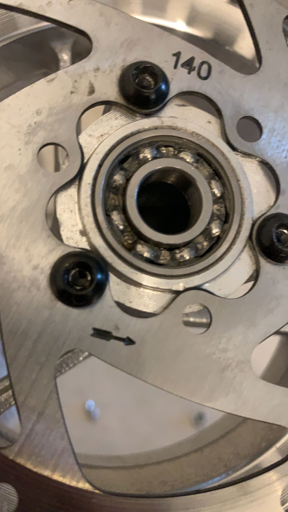 Переднее колесо с одной стороны мы видимо вроде как смазку, непонятного происхождения чем то напоминающую вазелин… Но удивительно вот то же самое колесо, такой же подшипник, просто с обратной стороны и смотрим