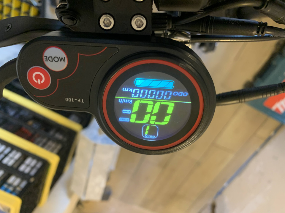 На руле имеется яркий дисплей. На нём можно видеть уровень заряда, текущую скорость, пробег, выбранную передачу и т.п.