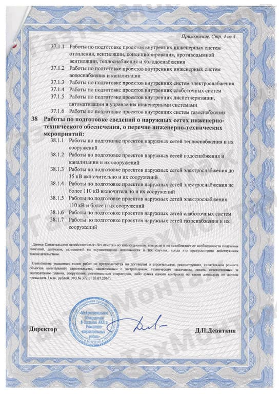 Компания Газтехмонтаж имеет все Допуски СРО и Разрешения на проведение монтажных работ с газовым оборудованием.