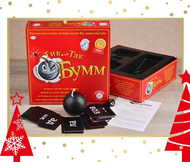 Игра на время для большой компании друзей. Здесь нужно быть максимально быстрым и находчивым, ведь вы рискуете, что в ваших руках «взорвется» игрушечная бомба. Игра создана по принципу кроссворда: вам придется называть слова с определенным слогом, который вам достался. И да, у вас будет ограничено время, так что потребуется хороший словарный запас.
