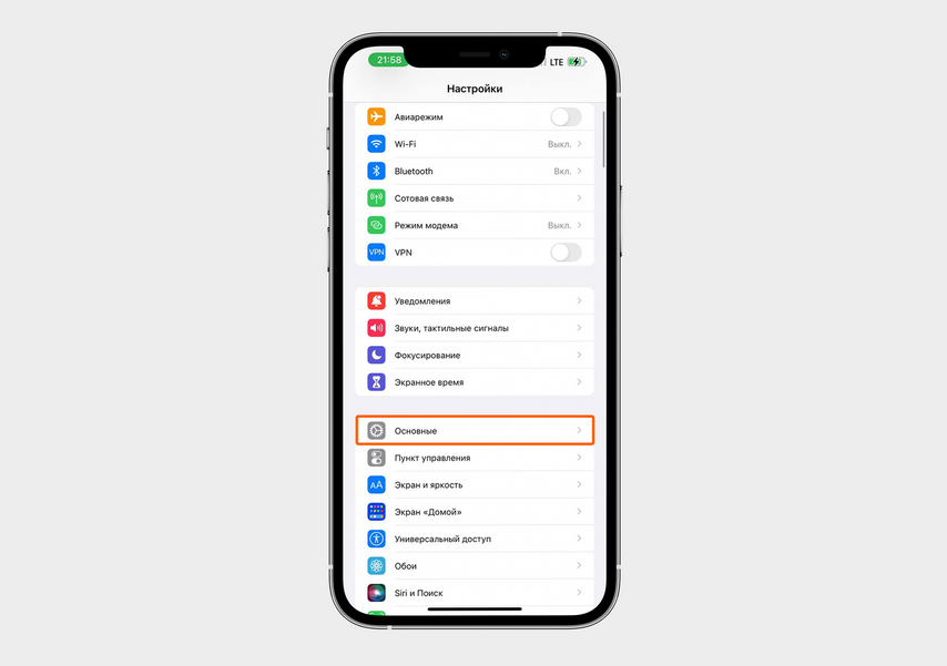 На iPhone 13 Pro Max зайдите в «Настройки» → «Основные»