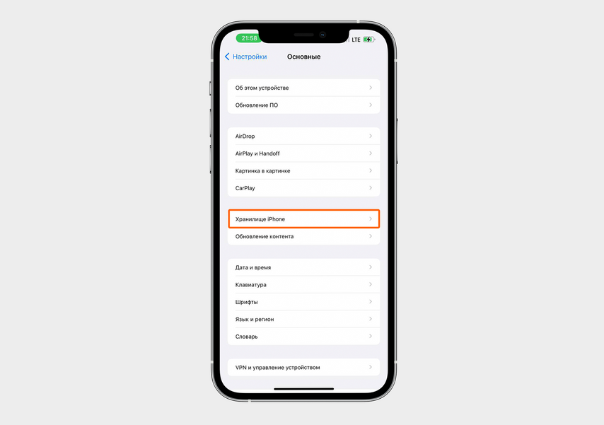 Если у вас iPhone, путь такой: «Настройки» → «Основные» → «Хранилище iPhone».