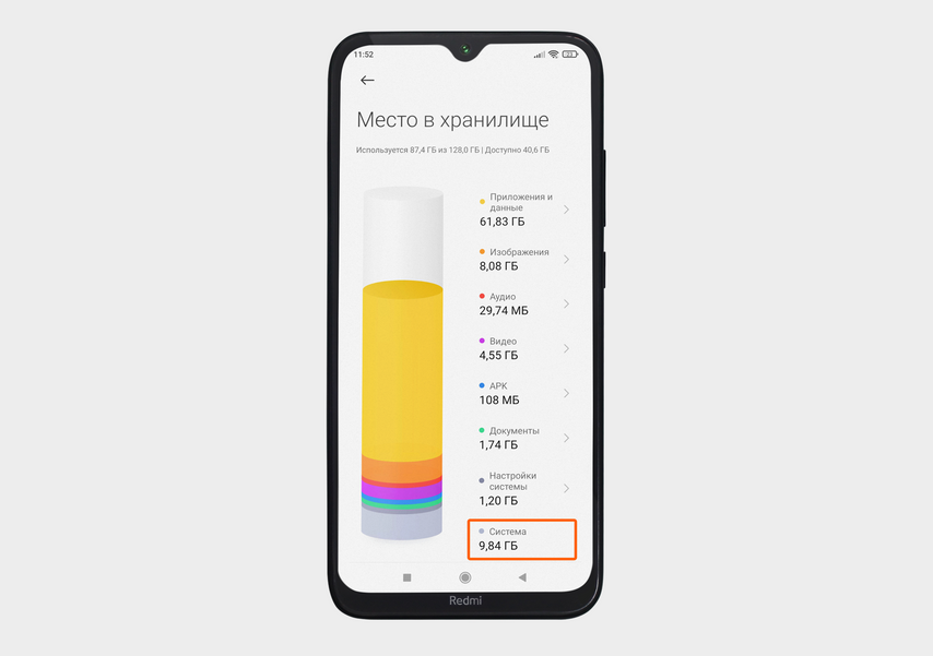 На Xiaomi Redmi Note 8 Pro система занимает почти 10 ГБ