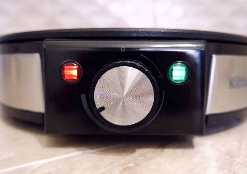 На Kitfort КТ-1678, как и на обычной сковороде, можно испечь блины любого размера — от небольших панкейков до блинов диаметром 30 см. Поверхность антипригарная, но ее можно дополнительно смазать растительным или сливочным маслом. Температура нагрева регулируется, причем плавно — спереди есть поворотный переключатель.