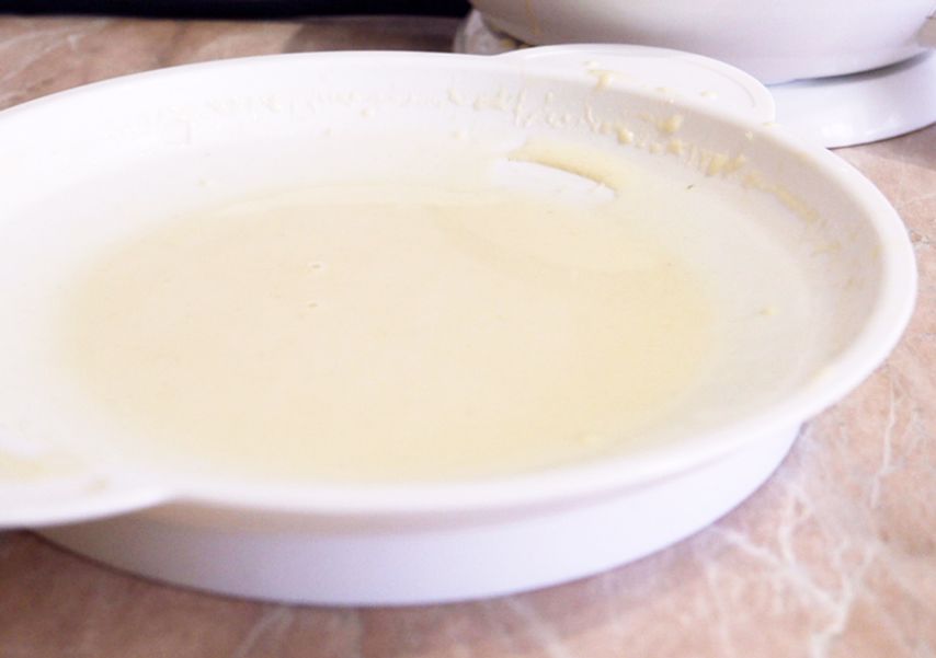 Удобство использования. Погружная блинница разогревается на подставке, напоминающей базу электрочайника. Кнопка включения и индикатор нагрева — на рукоятке. Тесто мы налили в тарелку из комплекта. Как только поверхность блинницы разогрелась, лампочка на рукоятке отключилась — можно печь блины. На разогрев ушло всего 30 секунд.