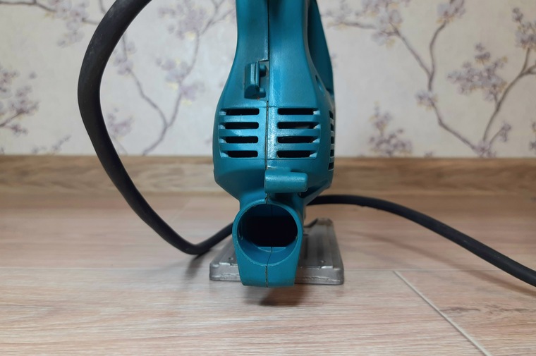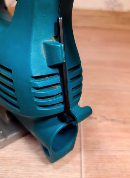 Сборка электролобзика Makita 4329 произведена на достойном уровне. Все детали хорошо подогнаны друг к другу, никаких непонятных зазоров и люфтов между деталями корпуса и элементами прибора не имеется. Сам инструмент массивный для своего размера, не ощущается «пустышкой». Также стоит отметить эргономичность рукоятки для удержания инструмента в руке. Присутствуют резиновые накладки по всей длине рукоятки, на внешней и внутренней сторонах. Данные накладки также имеют перфорацию для более надежного сцепления. Качество резины достаточно хорошее, но можно отметить что она не устойчива к растворителям и химически агрессивным средам.