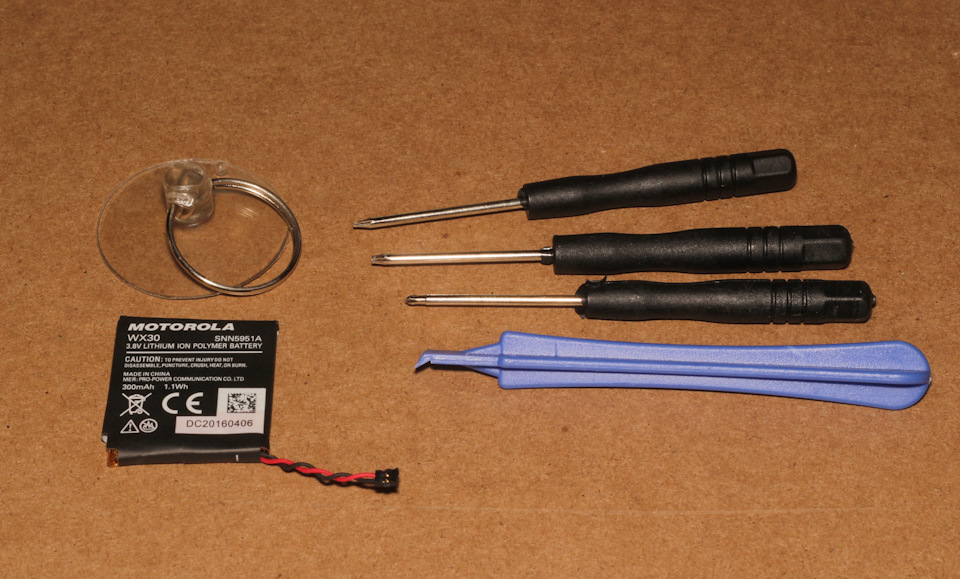 Практически все кроме батареи не нужно. Отвертки вообще не в тему, присоска так себе, ковырялка тоже. Отключаем: