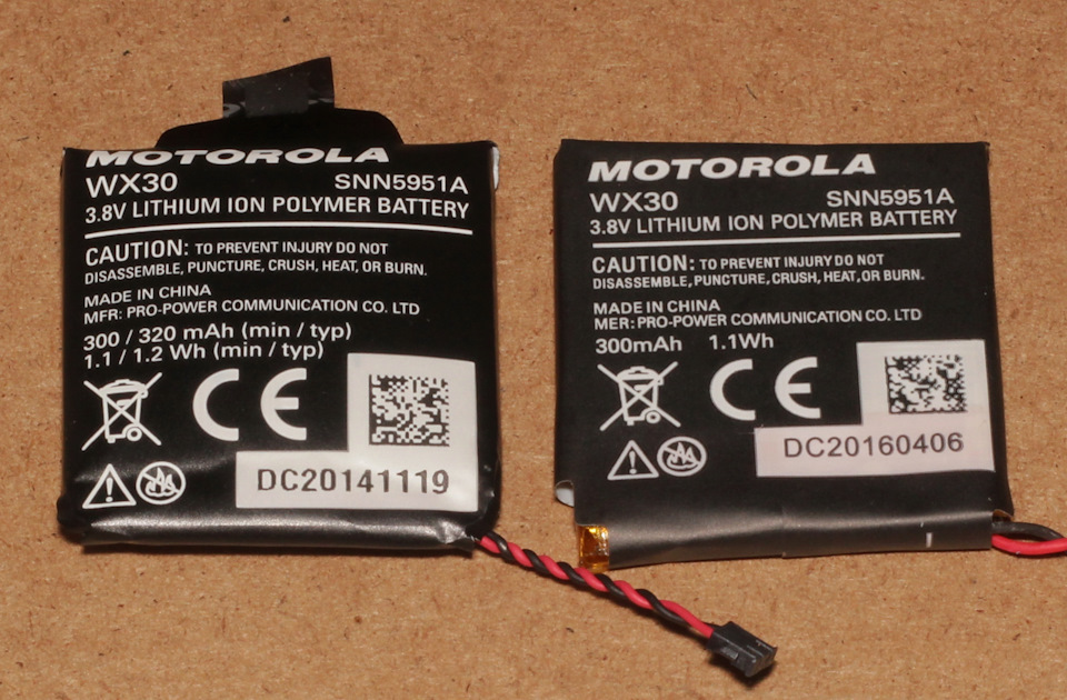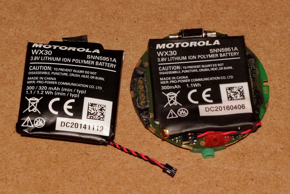 Motorola Moto 360: 3.8 В, 300 мАч, 1.1 Wh;