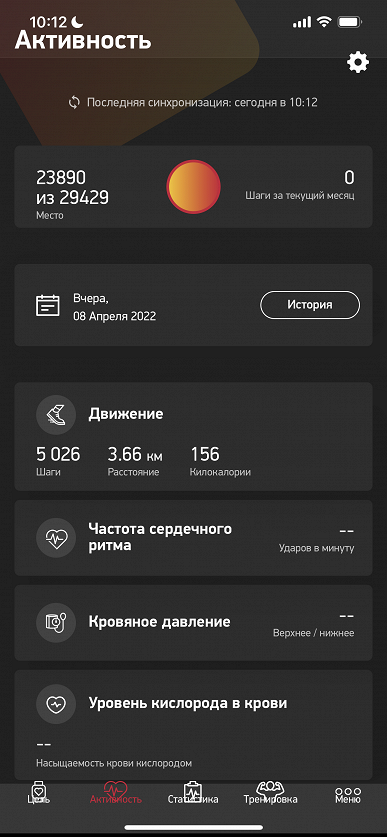 Еще больше потемкинские деревни напоминает главное меню. Здесь есть опция «Уровень кислорода в крови», но никаких свидетельств того, что браслет может делать соответствующее измерение, мы не нашли. Нам предлагается просто ввести данные вручную. В чем же смысл? Также есть измерение кровяного давления, и эти данные браслет действительно получает сам. Но как — загадка. И в какой степени им можно доверять, если даже во флагманских устройствах это не реализовано или же требует весьма непростых дополнительных действий вроде калибровки со специализированным тонометром?