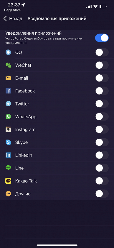 Любопытная деталь: если посмотреть в настройках смартфонного приложения Jet, каким приложениям позволено отправлять уведомления на браслет, мы увидим там в качестве одного из четырех пунктов WeChat. Очевидно, что это выдает китайское происхождение всего решения, хотя других явных следов восточного соседа в русскоязычной версии нет.