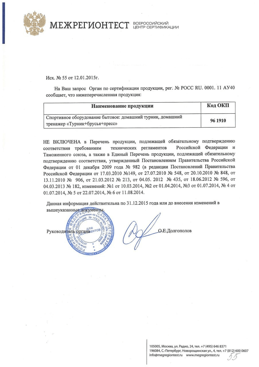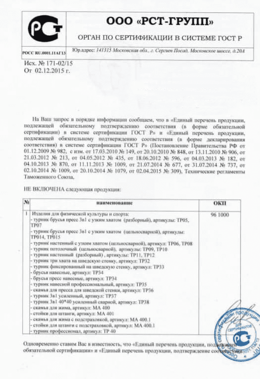 Надежность, качество и гарантия напольных турников от топ-турник.рф — вот на что в первую очередь обращают внимание покупатели. На все свои товары мы предоставляем гарантию от завода производителя и сертификаты установленного гос.образца. Еще один плюс покупки напольного турника на сайте топ-турник.рф — отсутствие «магазинных» и дилерских накруток. Вы получаете товар удобной транспортной компанией в свой город с возможностью расчета на месте после осмотра напольного турника!